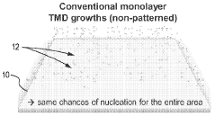 Technical Solution: TSMC has developed advanced 2D semiconductor heterostructure fabrication techniques that integrate transition metal dichalcogenides (TMDs) with conventional silicon technology. Their approach involves precise atomic layer deposition methods to create vertically stacked 2D materials with controlled interfaces. TSMC has pioneered a scalable manufacturing process for MoS2/WSe2 heterostructures that maintains crystalline quality across 300mm wafers[1]. Their technology enables the production of ultra-thin transistors with improved carrier mobility and reduced short-channel effects. TSMC has also developed specialized etching and transfer techniques to preserve the integrity of 2D material interfaces during integration with CMOS processes, allowing for heterogeneous integration of 2D materials with silicon technology[3].