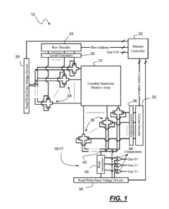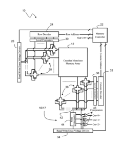 Technical Solution: Micron has developed 3D XPoint™ technology (in collaboration with Intel) and is also researching various ReRAM implementations. Their 3D XPoint technology uses a unique structure where memory cells are connected in a three-dimensional mesh, allowing for addressability at the bit level rather than block level. This architecture enables 1000x faster performance and 1000x greater endurance than NAND flash. Micron's ReRAM research focuses on metal-oxide based resistive switching mechanisms, particularly using hafnium oxide and tantalum oxide materials. Their technology demonstrates switching speeds in nanoseconds, endurance of 10^9 cycles, and retention times exceeding 10 years at operating temperatures. Micron has also developed specialized selector devices to minimize sneak path currents in crossbar arrays, addressing one of the key challenges in ReRAM implementation.