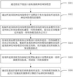 - Obtain the baseline neural network model through the preset loading interface, use the preset network layer and model of the tensor flow model to build the model to be converted, obtain and convert the weight matrix, and use the converter of the tensor flow lightweight framework to convert the model to The target model of the tensor flow lightweight inference engine avoids the operator incompatibility problem of ONNX intermediate conversion.