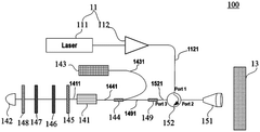 Strengths: Truly solid-state design with no moving parts enhances reliability and durability; distributed laser architecture inherently improves eye-safety profile; compact form factor suitable for integration into various platforms. Weaknesses: Manufacturing complexity of metasurface components increases production costs; beam quality and uniformity can be challenging to maintain across wide temperature ranges; system requires sophisticated calibration procedures.