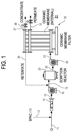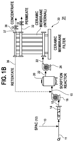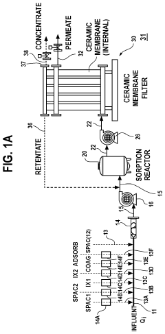 - Novel system designs for optimizing adsorption efficiency: Innovative system designs can significantly enhance the adsorption efficiency of activated carbon treatments. Multi-stage adsorption systems allow for more complete contaminant removal by providing sequential treatment steps. Fluidized bed reactors improve contact between adsorbent and contaminants by maintaining carbon particles in suspension. Hybrid systems combining activated carbon with other treatment technologies (such as membrane filtration, advanced oxidation, or biological treatment) can address a broader range of contaminants. Pulse flow systems optimize contact time and reduce channeling effects. Automated monitoring and control systems adjust operational parameters in real-time to maintain optimal adsorption conditions despite variations in influent quality.