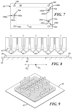 Technical Solution: ASM International has developed a comprehensive SALD film adhesion solution centered around their proprietary "InterfaceEngineering" technology suite. This approach combines pre-deposition surface treatments with carefully designed nucleation layers to maximize adhesion across diverse substrate materials. Their SALD systems incorporate multi-step surface activation processes using controlled plasma exposure and chemical functionalization to create optimal binding sites[2]. ASM's technology employs precise gas flow dynamics in their spatial ALD reactors to ensure uniform precursor distribution, which directly impacts interface quality and adhesion performance. The company has pioneered gradient composition interfaces where film composition gradually transitions from substrate to final film chemistry, eliminating abrupt interfaces that often lead to adhesion failures[4]. Their systems also feature real-time monitoring of film growth and interface formation using in-situ ellipsometry and quartz crystal microbalance techniques[7].