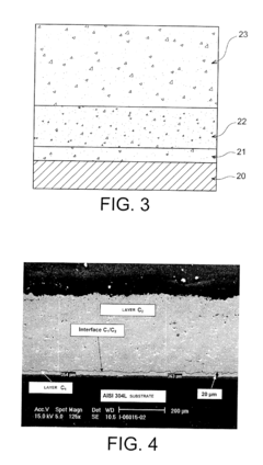 Technical Solution:  Sulzer has pioneered a multi-layer ceramic coating system utilizing their proprietary HVOF (High Velocity Oxy-Fuel) and APS (Atmospheric Plasma Spray) technologies. Their approach focuses on optimizing the interface between metallic substrates and ceramic top coats through carefully engineered gradient layers. The company's MetcoMax solution incorporates nano-structured bond coats with controlled oxidation behavior that promotes chemical bonding while minimizing residual stress accumulation. Sulzer's process employs precise control of particle temperature and velocity during deposition, resulting in coatings with less than 2% porosity and superior adhesion strength exceeding 70 MPa in standard testing. Their technology also features specialized post-deposition heat treatments that promote diffusion bonding at interfaces while relieving internal stresses. For applications requiring extreme thermal cycling resistance, Sulzer has developed segmented ceramic structures with engineered micro-cracks that accommodate thermal expansion differences without compromising adhesion.