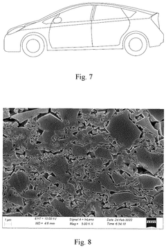 Surface modification of electrode materials significantly impacts their sodium ion adsorption capacity. Techniques such as coating, functionalization, and defect engineering can create additional adsorption sites and improve the interface properties. These modifications enhance the wettability of electrodes with electrolytes, reduce interfacial resistance, and prevent unwanted side reactions. By optimizing the surface chemistry and structure, the adsorption kinetics and capacity for sodium ions can be substantially improved.Expand Specific Solutions05 Porous structure design for increased capacity