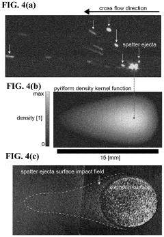 - A method involving a hatch progression angle and pyriform density function process metric is used to control spatter-induced porosity by computing a spatter exposure metric, which involves selecting principal points, determining neighborhoods, and integrating a pyriform kernel function to update the build file and design a build strategy that mitigates spatter, ensuring the hatch progression angle is aligned with the crossflow direction.
