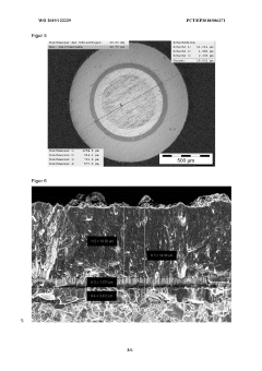Technical Solution: GE has developed advanced thermal barrier coating (TBC) systems utilizing yttria-stabilized zirconia (YSZ) with enhanced strain tolerance through engineered microstructures. Their proprietary electron beam physical vapor deposition (EB-PVD) process creates columnar structures that provide superior thermal insulation while accommodating thermal expansion. GE's multi-layer approach incorporates a MCrAlY bond coat (where M represents nickel, cobalt, or both) that forms a thermally grown oxide layer of alumina, providing excellent adhesion and oxidation resistance[1]. Recent innovations include the incorporation of rare earth elements like hafnium and yttrium into the bond coat to improve oxide scale adhesion, and development of low thermal conductivity ceramic top coats with gadolinium zirconate and other complex oxides that offer improved phase stability at extreme temperatures[3]. GE has also pioneered smart coating systems with embedded sensors for real-time monitoring of coating degradation.
