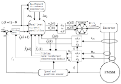 Sensorless control methods eliminate the need for position sensors, reducing costs and improving reliability. These techniques estimate the rotor position and speed using motor voltage and current measurements. Common approaches include back-EMF estimation, high-frequency signal injection, and model-based observers.Expand Specific Solutions03 Predictive Current Control