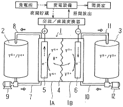 Technical Solution: Sumitomo Electric has developed advanced vanadium redox flow battery (VRFB) electrolyte formulations featuring high-concentration vanadium solutions with specialized additives to prevent precipitation at extreme temperatures. Their proprietary electrolyte contains optimized sulfuric acid concentrations (4-6M) and incorporates phosphoric acid derivatives as stabilizing agents, enabling operation between -5°C and 50°C without crystallization issues[1]. The company has also pioneered mixed-acid electrolytes combining sulfuric and hydrochloric acids to increase vanadium solubility up to 2.5M, significantly improving energy density by approximately 70% compared to conventional formulations[2]. Sumitomo's electrolyte technology includes proprietary additives that reduce membrane fouling and extend cycle life beyond 20,000 cycles while maintaining over 80% capacity retention[3].