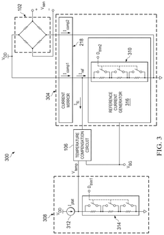 Technical Solution: Texas Instruments has developed sophisticated Hall Effect sensor signal correction algorithms integrated into their DRV5x family of sensors. Their approach employs a chopper-stabilized architecture that modulates the Hall voltage to higher frequencies, effectively eliminating DC offset errors and 1/f noise. This technique achieves offset drift below 0.2μT/°C across the full operating temperature range. TI's signal processing pipeline incorporates digital filtering with programmable bandwidth settings, allowing optimization between noise rejection and response time based on application requirements. Their sensors implement real-time temperature compensation using embedded temperature sensors with individual calibration coefficients stored in on-chip EEPROM. TI has pioneered integrated diagnostics that continuously monitor sensor performance and can detect deterioration before measurement accuracy is compromised[5]. The company's advanced algorithms include adaptive gain control that automatically adjusts sensitivity based on the detected magnetic field strength, maintaining linearity across the full measurement range. Their latest generation incorporates machine learning techniques to identify and compensate for systematic error patterns, improving accuracy by up to 25% compared to conventional approaches. TI's automotive-grade sensors include stray field compensation algorithms that use differential sensing elements to reject common-mode magnetic interference.