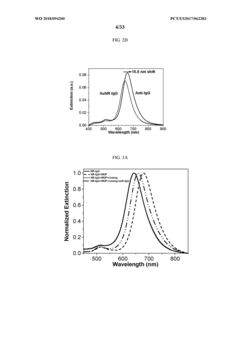 Technical Solution: CSIC has developed a groundbreaking approach to plasmonic biosensors using bimetallic nanostructured coatings with catalytic properties. Their technology employs precisely controlled deposition of platinum group metals (primarily palladium and platinum) over gold substrates to create catalytically active sensing surfaces. These surfaces are engineered with specific nanoscale geometries (nanodisks, nanoholes) that optimize both plasmonic resonance and catalytic activity. The metal coatings are deposited using advanced techniques like magnetron sputtering and atomic layer deposition to achieve uniform layers with thicknesses controlled at the nanometer scale. CSIC's innovation lies in exploiting the catalytic properties of these metals to amplify the sensing signal through localized chemical reactions at the sensor surface. This approach enables what they term "catalytically-enhanced plasmonic sensing," where the metal coating serves dual functions: supporting surface plasmon resonance and catalyzing reactions that enhance detection sensitivity. Their sensors have demonstrated remarkable performance in detecting environmental contaminants and biomarkers at concentrations below 1 ng/mL.