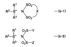 - A resist composition comprising a resin component with changed alkali solubility and an acid generator component, specifically using onium salts or sulfonium compounds with fluorinated alkyl groups, which generates acid upon exposure, enhancing the sensitivity and resolution in lithography processes.