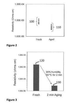 Formulation stability presents another significant challenge. Silver nanowires tend to aggregate and sediment in ink formulations, reducing shelf life and compromising print quality. While various stabilizing agents and surface modifications have been developed, achieving long-term stability without compromising conductivity remains difficult. Current commercial formulations typically offer stability periods of 6-12 months, which falls short of industry requirements for mass production scenarios.