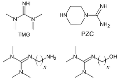 - Development of membranes comprising a support layer with a selective polymer layer containing high molecular weight polymeric fixed carriers, such as polyguanidine polymers, which enhance stability and selectivity for CO2 separation.
