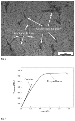 Technical Solution: ATI Properties has pioneered advanced titanium alloys specifically engineered for pharmaceutical applications through their ATI 425® Alloy technology. This proprietary alloy combines the corrosion resistance of commercially pure titanium with enhanced mechanical properties through careful microstructure control. For pharmaceutical equipment, ATI has developed specialized cold-working and heat treatment processes that create an exceptionally smooth surface finish (Ra values as low as 0.1μm) while maintaining excellent cleanability characteristics. Their titanium solutions demonstrate superior resistance to sanitizing agents including hydrogen peroxide, peracetic acid, and sodium hydroxide that typically degrade stainless steel over time. ATI's pharmaceutical-grade titanium exhibits no detectable metal leaching in acidic media tests (pH 2-5) after extended exposure periods, whereas comparable tests with 316L stainless steel showed measurable nickel and chromium release. The company has also developed specialized joining technologies that maintain the corrosion-resistant properties at weld zones, addressing a traditional weakness in titanium fabrication.