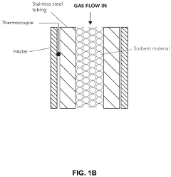 Strengths: Highly modular and scalable design allows for flexible implementation in various aerospace platforms. The technology operates effectively in low-pressure environments, making it suitable for high-altitude and space applications. Weaknesses: Energy requirements for the thermal swing process may limit application in power-constrained aerospace systems. The current weight-to-capture ratio may need further optimization for flight applications where weight is critical.