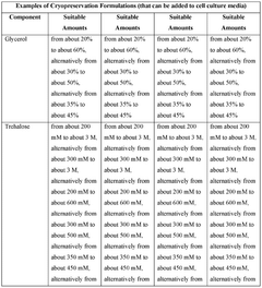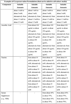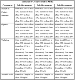 - The development of cryopreservation formulations and media that utilize a combination of cryoprotective agents such as glycerol, trehalose, ascorbic acid, and taurine, without DMSO, to effectively preserve mammalian cells and tissues.