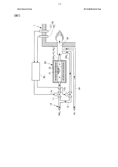 Technical Solution: Kawasaki Heavy Industries has developed advanced ammonia combustion technologies specifically designed for low-temperature combustion (LTC) applications. Their approach involves a dual-stage combustion system where ammonia is first partially decomposed in a catalytic reactor before entering the main combustion chamber. This pre-decomposition process allows for more stable combustion at lower temperatures (below 1300°C), significantly reducing NOx formation. Kawasaki's system incorporates precise fuel injection timing control and exhaust gas recirculation (EGR) to maintain optimal combustion conditions. Their technology has been successfully demonstrated in industrial gas turbines achieving over 70% ammonia combustion ratio while maintaining stable flame characteristics and emissions control[1]. The company has also developed specialized burner designs with staged air introduction that enables better control of the ammonia combustion process at varying load conditions, addressing one of the key challenges in ammonia's relatively narrow flammability limits compared to conventional fuels.