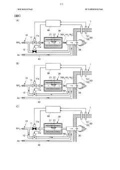 Fuel cell systems utilizing ammonia as a hydrogen carrier require materials and components compatible with ammonia's chemical properties. These systems may directly use ammonia or employ cracking technology to extract hydrogen. Compatibility considerations include electrode materials, membrane assemblies, and catalyst systems that can withstand ammonia exposure. Power generation systems must address issues related to ammonia's corrosivity, toxicity, and potential contaminants that could poison catalysts.Expand Specific Solutions05 Safety and environmental compatibility of ammonia fuel systems