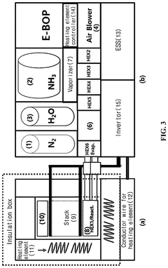 System control represents a significant technical hurdle, as SOFCs exhibit slow start-up and shutdown characteristics due to their high operating temperatures. This limits load-following capabilities and requires sophisticated control algorithms to manage transient operations. The control system must balance ammonia flow rates, cracking efficiency, and SOFC operating parameters to maintain optimal performance while preventing harmful conditions such as carbon deposition or catalyst poisoning.