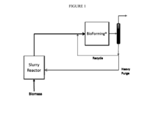 Technical Solution: Virent has pioneered the BioForming® process, a comprehensive technology platform for converting plant-based sugars into a spectrum of hydrocarbon molecules identical to those produced from petroleum. Their approach centers on aqueous phase reforming (APR) using proprietary catalysts that enable the conversion of biomass-derived oxygenates in water-based solutions. The process begins with the dissolution of biomass-derived sugars in water, followed by catalytic reactions that reduce oxygen content while preserving carbon chains. A key innovation is their solvent system that combines water with specific organic co-solvents to enhance reaction efficiency and product separation. The technology produces drop-in biofuels and biochemicals without the oxygen content typical of traditional biofuels, resulting in products with higher energy density and complete compatibility with existing infrastructure. Virent's process can utilize various biomass feedstocks including corn starch, sugarcane, and cellulosic materials.