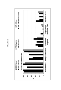 Furan-based compounds derived from biomass represent an important class of renewable solvents. These include furfural, 5-hydroxymethylfurfural (HMF), and their derivatives, which can be produced from the dehydration of sugars present in biomass. The production processes typically involve catalytic conversion of carbohydrates under specific temperature and pressure conditions. These furan-based solvents offer unique properties including high solvency power and biodegradability, making them suitable replacements for traditional petroleum-derived solvents in various applications.Expand Specific Solutions04 Extraction and purification methods for biomass-derived solvents