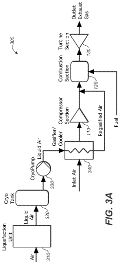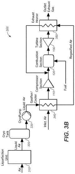Technical Solution: Highview Enterprises has developed a proprietary Liquid Air Energy Storage (LAES) system that utilizes cryogenic principles for grid-scale energy storage. Their CRYOBattery technology liquefies air by cooling it to -196°C, storing it in insulated tanks, and later expanding it through a turbine to generate electricity when needed. The system incorporates specialized cryogenic electronics that can operate efficiently at extremely low temperatures, including temperature sensors, pressure monitors, and control systems designed to withstand cryogenic conditions. Highview's approach integrates waste heat/cold utilization from nearby industrial processes to improve round-trip efficiency, which has reached approximately 60-70% in their commercial installations. Their modular design allows for scalability from 10MW to multiple GW systems with discharge durations ranging from 4 to over 24 hours, making it particularly suitable for long-duration energy storage applications.