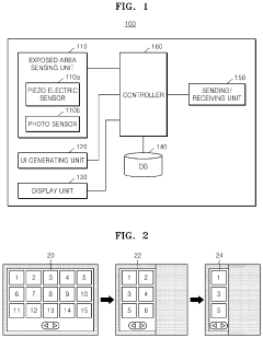Technical Solution:  Samsung has pioneered flexible microdisplay interface designs through their YOUM technology, which evolved into their current flexible AMOLED displays. Their technical approach involves using polyimide substrates instead of traditional glass to achieve flexibility while maintaining display quality. Samsung's interface design incorporates ultra-thin film transistor (TFT) backplanes with specialized interconnect structures that can withstand repeated bending without performance degradation. Their proprietary Touch and Display Driver Integration (TDDI) technology reduces the number of components and connection points, creating more reliable flexible interfaces for mobile devices. Samsung has also developed specialized encapsulation techniques using multi-layer thin-film encapsulation (TFE) that protects sensitive OLED materials from oxygen and moisture while maintaining flexibility. Recent advancements include variable refresh rate technology that dynamically adjusts between 1-120Hz based on content requirements, optimizing power consumption for mobile applications.