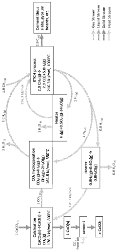 Strengths: Comprehensive approach addressing multiple aspects of concrete's carbon footprint; leverages existing industrial waste streams; implemented at commercial scale with demonstrated performance. Weaknesses: High capital costs for CCUS implementation; variable performance depending on raw material availability; requires significant technical expertise to operate integrated systems.