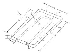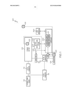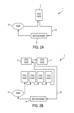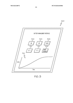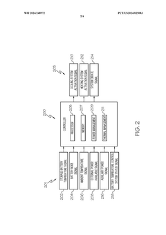 Technical Solution: Hitachi has developed an advanced grid storage solution featuring their "Adaptive Battery Cooling Technology" that dynamically adjusts cooling intensity based on real-time battery conditions and grid demands. Their system utilizes a hybrid cooling approach combining direct liquid cooling for high-density battery modules with strategic air cooling for auxiliary components, optimizing overall energy efficiency. Hitachi's thermal management incorporates phase-change materials embedded within battery modules that provide passive temperature regulation, absorbing excess heat during high discharge rates and releasing it during low-demand periods. Their grid storage installations feature thermal segmentation with fire-resistant barriers between battery clusters that can contain thermal events within limited zones. Hitachi's Battery Management System employs machine learning algorithms that continuously analyze thermal patterns to identify potential failure modes up to 72 hours before they might occur, enabling preemptive maintenance. Additionally, their cooling system incorporates variable-speed pumps and fans that adjust operation based on cooling demands, reducing parasitic energy losses by approximately 40% compared to constant-speed systems.