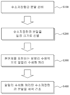 - A method involving alkaline water washing followed by acidic electroless copper or nickel plating is applied to hydrogen storage alloy powder to enhance surface properties, forming a nickel-rich layer and micropores, which accelerates initial activation and improves discharge capacity and cycle life.