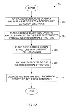 - The use of a noncontiguous array of dielectric particles, such as glass beads or fibers, replaces the traditional separator, allowing for reduced electrode distance and increased ionic transport pathways while maintaining dielectric integrity, thereby reducing cell impedance and enhancing volumetric capacitance.