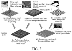 Recent research has focused on hybrid approaches combining metal meshes with other conductive materials like graphene or conductive polymers to overcome these limitations. These composite structures aim to leverage the high conductivity of metals while addressing transparency and flexibility constraints through synergistic material combinations.