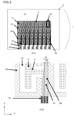 Technical Solution: BOE has developed advanced metal mesh conductivity solutions for touch panels and displays, focusing on ultra-fine metal mesh structures with line widths below 5μm. Their proprietary patterning technology creates invisible conductive grids that maintain over 90% optical transparency while achieving sheet resistance below 10 ohms/square. BOE implements a multi-layer metal mesh architecture that combines silver and copper nanowires to optimize both conductivity and durability. Their manufacturing process includes specialized anti-oxidation coatings that extend the operational lifespan of metal mesh components by up to 40% compared to conventional implementations. For flexible display applications, BOE has pioneered stretchable metal mesh designs that maintain conductivity even under repeated bending cycles, with less than 5% resistance change after 100,000 flexing operations.
