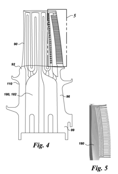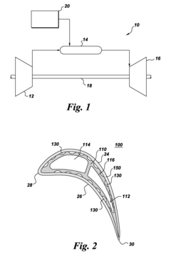 Technical Solution: General Electric has developed advanced microchannel cooling systems specifically for aerospace applications, focusing on high-performance jet engines and aircraft systems. Their technology utilizes an integrated network of microchannels (typically 10-500 micrometers in width) embedded directly into critical components like turbine blades and electronic systems. GE's approach employs a dual-phase cooling mechanism where the working fluid transitions between liquid and vapor states, extracting significantly more heat than single-phase systems. Their proprietary surface treatments enhance nucleate boiling and reduce pressure drops across the microchannels, achieving heat flux capabilities exceeding 500 W/cm² in some applications. GE has also pioneered additive manufacturing techniques to create complex internal cooling geometries previously impossible with traditional manufacturing, allowing for optimized flow distribution and reduced thermal gradients. Their systems incorporate smart sensors for real-time monitoring of cooling performance and predictive maintenance capabilities.
