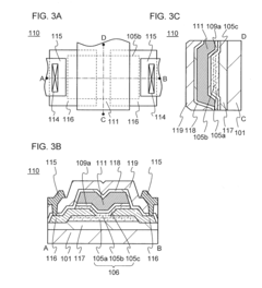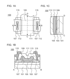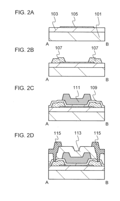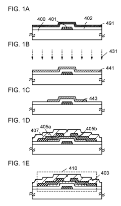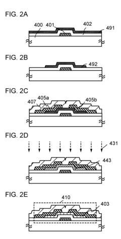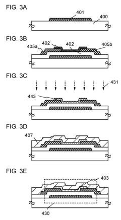 Technical Solution: Semiconductor Energy Laboratory (SEL) has developed proprietary CAAC-IGZO (c-axis aligned crystalline indium-gallium-zinc oxide) technology that specifically addresses oxygen vacancy control in oxide semiconductors. Their approach involves precise control of oxygen partial pressure during deposition and post-deposition annealing treatments to optimize oxygen vacancy concentration. SEL has pioneered a unique crystallization method that creates a nanocrystalline structure with reduced grain boundaries, minimizing sites for oxygen vacancy formation. Their research has demonstrated that controlled oxygen vacancy distribution can significantly improve electron mobility (>10 cm²/Vs) while maintaining low off-state current (<10^-13 A). SEL has also developed in-situ monitoring techniques to analyze oxygen vacancy formation during film growth, allowing real-time adjustments to deposition parameters.
