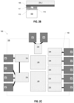 Technical Solution: Intel has developed a comprehensive silicon photonics platform that integrates III-V materials with silicon to create high-performance photonic integrated circuits (PICs). Their technology utilizes hybrid silicon lasers where InP-based gain materials are bonded to silicon waveguides, enabling efficient light generation while leveraging silicon's processing advantages. Intel's 400G photonic integrated circuits employ four wavelength channels at 100 Gbps each, utilizing advanced modulation schemes. Their manufacturing approach incorporates standard CMOS processes with specialized III-V integration techniques, allowing for wafer-scale production of photonic components alongside electronic elements. Intel has demonstrated data transmission rates exceeding 400 Gbps with their silicon photonics technology, with roadmaps targeting terabit-per-second capabilities for next-generation data centers and high-performance computing applications.