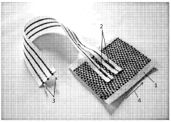 Technical Solution: Nextiles has pioneered an innovative approach to smart textile sensors using sewing machine-based fabrication of conductive thread networks. Their technology creates complex circuit patterns directly integrated into fabrics using specialized conductive threads with proprietary coatings that maintain conductivity even under significant mechanical deformation. The company's patented "E-Textile" platform combines traditional sewing techniques with advanced materials science to create sensors that can detect strain, pressure, and motion while maintaining signal integrity during stretching and bending. Their sensors utilize a multi-layered architecture where conductive threads are strategically positioned to create resistive networks that change predictably under deformation. Nextiles' manufacturing process involves precision sewing of conductive threads into specific patterns, followed by application of protective coatings that prevent conductivity degradation during washing and repeated use. Their sensors feature a unique thread-based design that allows for breathability and comfort while maintaining electrical functionality, making them particularly suitable for athletic performance monitoring and medical applications requiring long-term wear.