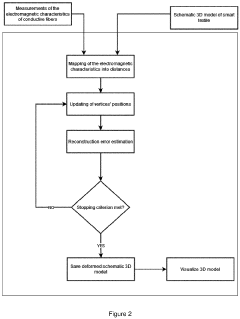 - An apparatus and process that utilize measurements of electromagnetic characteristics from conductive fibers in smart elastic textiles to perform real-time 3D reconstruction, aligning measurement points with a schematic 3D model, transforming electromagnetic data into distances, and iteratively calculating vertex positions to minimize reconstruction error, allowing for continuous visualization of deformation.