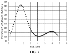 Carbon-based materials, including activated carbon, carbon nanotubes, and graphene-derived sorbents, offer promising solutions for CO2 capture due to their high surface area and thermal stability. These materials can be modified through various treatments to enhance their CO2 adsorption capacity and selectivity. Carbon-based sorbents typically exhibit excellent thermal stability, allowing for efficient regeneration at elevated temperatures without significant degradation. Their porous structure can be tailored to optimize CO2 diffusion and adsorption kinetics, while surface functionalization can further improve their performance and regeneration efficiency.Expand Specific Solutions05 Regeneration methods and energy efficiency optimization