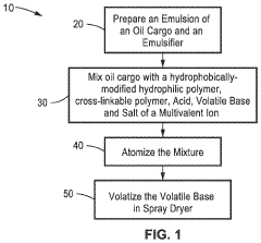 Specific formulation techniques have been developed to enhance the properties of spray-dried products. These include the addition of carriers, stabilizers, and other excipients that improve flowability, stability, and dissolution characteristics. Formulation strategies may involve pre-treatment of feed materials, adjustment of solid content, or incorporation of functional additives to achieve desired product attributes.Expand Specific Solutions04 Encapsulation and controlled release applications