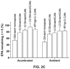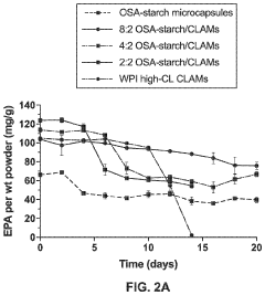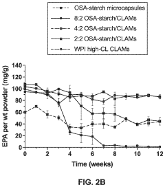 - A single-step spray drying method using cross-linked alginate microcapsules with hydrophobically functionalized starch, where in situ internal gelation occurs during spray drying, providing enhanced storage stability and controlled release of cargo through pH control and the use of a volatile base to liberate calcium ions for cross-linking alginate polymers.