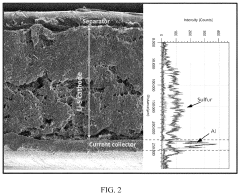 Strengths: Practical implementation focus with manufacturing processes compatible with existing production lines, reducing commercialization barriers. Wide operating temperature range suitable for diverse climate conditions. Weaknesses: Energy density improvements, while significant, are more modest than some laboratory-based approaches. Technology still requires further development to match the cycle life of current lithium-ion batteries in production vehicles.