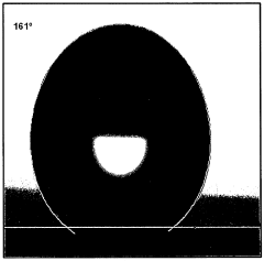- Utilization of a unique combination of silicone binder, nanotitania, nanosilica, magnesium silicate, and aluminum stearate to create micro/nano roughness that effectively entraps air and decreases the solid-liquid interface.