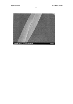 Technical Solution: Nantong Textile and Silk Institute has developed a biomimetic superhydrophobic coating technology specifically optimized for silk and high-end textiles. Their approach utilizes a multi-layer application process incorporating modified silica nanoparticles combined with environmentally friendly fluorine-free polymers. The institute's innovation centers on preserving the natural properties of luxury textiles while imparting extreme water repellency, achieving contact angles of 152-158° without compromising the distinctive hand feel and drape of premium fabrics. Their coating technology employs a proprietary low-temperature plasma treatment as a pre-processing step, creating nanoscale surface roughness that enhances the subsequent coating adhesion and performance. The institute has successfully commercialized this technology for high-end fashion applications, demonstrating superhydrophobic properties that withstand dry cleaning processes - a critical requirement for luxury textiles. Recent advancements include the incorporation of natural waxes derived from plant sources, creating a more sustainable alternative while maintaining comparable performance to synthetic options.