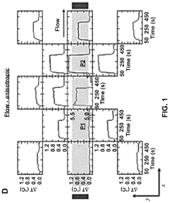 Technical Solution: Northwestern University has developed innovative "epidermal electronics" platforms that address thermal dynamics challenges in wearable biosensors through ultra-thin, skin-like form factors. Their approach utilizes serpentine interconnect structures that minimize heat concentration by distributing thermal energy across larger surface areas. Northwestern's research team has pioneered thermally responsive hydrogel interfaces that provide both thermal insulation and moisture management at the skin-device interface, crucial for maintaining sensor accuracy and preventing irritation during extended wear. Their thermal management system incorporates microfabricated thermal actuators that can provide localized cooling when sensors approach critical temperature thresholds. Northwestern has also developed advanced thermal modeling techniques that account for the complex heat transfer mechanisms between electronic components, substrate materials, and human skin under various activity levels and environmental conditions[4][7]. Their latest innovations include thermally conductive yet mechanically compliant materials that maintain effective heat dissipation even when the device undergoes significant mechanical deformation during body movement.