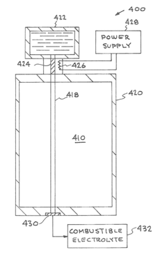 Technical Solution: Tesla has developed a comprehensive thermal runaway prevention and management system for battery manufacturing that integrates multiple layers of protection. Their approach includes advanced cell design with proprietary electrode materials and electrolyte formulations that increase thermal stability thresholds. Tesla implements real-time monitoring systems using distributed temperature sensors and AI algorithms to detect thermal anomalies before they escalate into runaway events. Their manufacturing process incorporates automated quality control with high-precision imaging and impedance testing to identify defective cells. Tesla's battery packs feature physical isolation barriers between cells and dedicated thermal management systems that can rapidly cool specific modules when temperature spikes are detected. Additionally, they've developed venting mechanisms that direct thermal events away from other cells to prevent propagation throughout the battery pack[1][3]. Tesla also utilizes machine learning algorithms trained on manufacturing data to predict potential failure points and optimize production parameters accordingly.