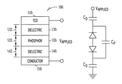 Technical Solution: Samsung has developed a comprehensive TCO technology portfolio centered around zinc-based compounds for optical device applications. Their flagship Aluminum-doped Zinc Oxide (AZO) technology achieves optical transparency above 85% while maintaining electrical conductivity comparable to traditional ITO but at significantly reduced costs[3]. Samsung's proprietary deposition process enables precise control of film microstructure, resulting in enhanced carrier mobility exceeding 40 cm²/Vs. Their TCO materials are integrated into OLED displays through a specialized multi-layer architecture that optimizes both optical and electrical performance while minimizing reflection at interfaces. Samsung has also pioneered hybrid TCO structures combining different materials to achieve optimal performance across various device requirements. Recent innovations include room-temperature processed TCOs using solution-based methods that reduce manufacturing energy consumption by approximately 40% compared to conventional vacuum deposition techniques[4]. Their TCO technology roadmap includes development of self-healing conductive films that can recover from mechanical damage, addressing durability concerns in flexible display applications.