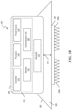 Technical Solution: Samsung has developed a comprehensive industrial wearable biosensor ecosystem centered around their ARTIK IoT platform. Their approach integrates multiple sensing modalities into compact, energy-efficient wearable devices designed specifically for industrial applications. Samsung's industrial biosensors utilize advanced microelectromechanical systems (MEMS) technology to create miniaturized sensors capable of detecting various physiological parameters including heart rate variability, galvanic skin response, blood oxygen levels, and body temperature. These sensors are incorporated into wristbands, smart clothing, and safety equipment that workers can wear comfortably throughout their shifts. The collected biometric data is processed through Samsung's proprietary algorithms that can identify patterns indicating fatigue, stress, dehydration, or exposure to environmental hazards. Their system features real-time wireless data transmission to KNOX-secured cloud platforms, where advanced analytics provide supervisors with actionable insights while maintaining worker privacy through sophisticated data anonymization techniques. Samsung has also developed specialized sensors for detecting environmental hazards such as toxic gas exposure, radiation, and extreme temperatures.