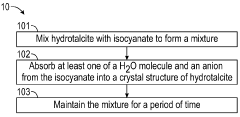 - A composition containing a polymeric isocyanate and a hydrotalcite additive, where the hydrotalcite absorbs water and anions from the isocyanate mixture into its crystal structure, stabilizing the isocyanate and extending its shelf life by reducing polymerization.