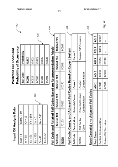 Technical Solution: Cummins has developed an advanced LSA (Linear Signature Analysis) Engine Diagnostic System that integrates real-time sensor data with machine learning algorithms to predict maintenance needs before failures occur. Their system employs multiple sensor arrays throughout the engine to capture vibration signatures, temperature variations, and pressure fluctuations. The collected data undergoes spectral analysis to identify deviations from normal operating patterns. Cummins' proprietary algorithms can detect subtle changes in engine performance that indicate potential issues such as bearing wear, fuel injector problems, or valve train deterioration. The system incorporates historical maintenance records and fleet-wide performance data to continuously improve prediction accuracy. Their PrevenTech® platform connects these diagnostic capabilities to cloud infrastructure, enabling remote monitoring and integration with maintenance scheduling systems. This allows fleet operators to optimize maintenance intervals based on actual engine condition rather than fixed schedules.